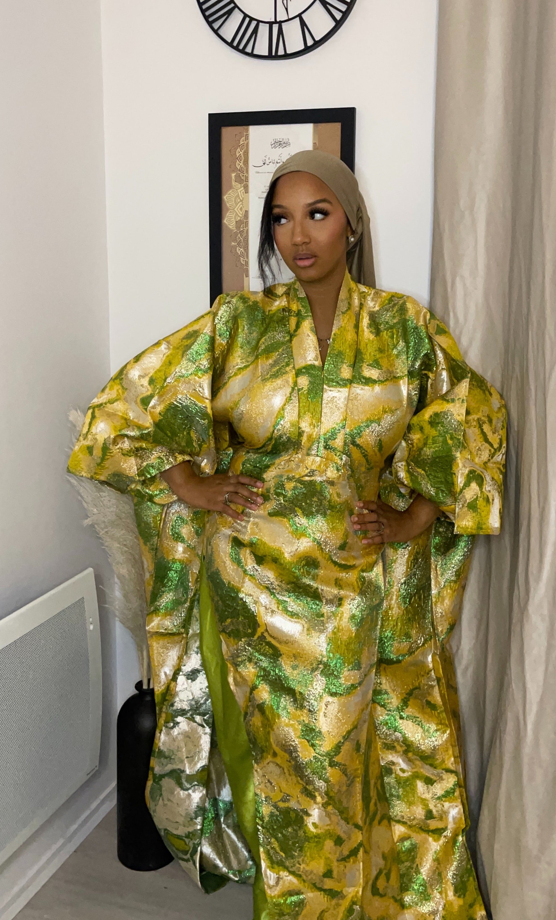 Le Set SOMONYA combine un haut asymétrique en brocard et un pantalon en satin pour un look élégant et raffiné, parfait pour la modest fashion. Sa ceinture ajustable permet de resserrer la taille et de mettre en valeur toutes les silhouettes.